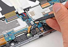 Специалист нашего сервисного центра проводит работу: заменяет поврежденную часть работоспособной оригинальной частью